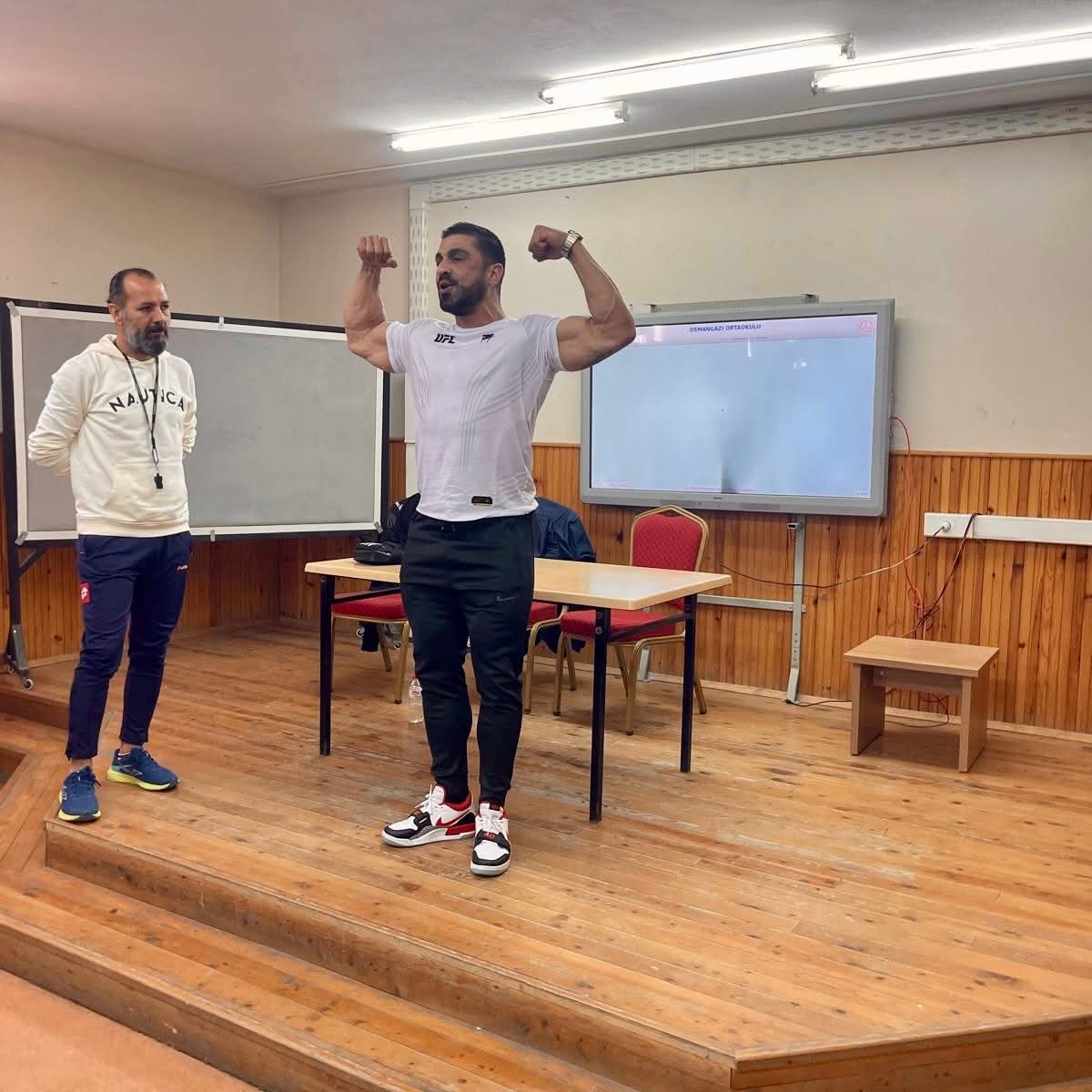 Avukat, 2025 NBF-A Vücut Geliştirme Avrupa Şampiyonlar Şampiyonu Mert Arıoğlu, Osmangazi Ortaokulu’nda öğrencilerle bir araya gelerek “Sağlıklı Yaşam ve Spor” konularında keyifli bir söyleşi gerçekleştirdi.