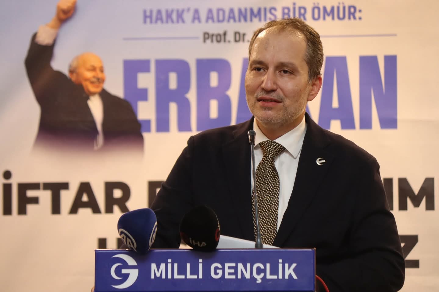 Milli Gençlik Derneği tarafından organize edilen programda, Yeniden Refah Partisi Genel Başkanı Dr. Fatih Erbakan davetlilere hitap etti.