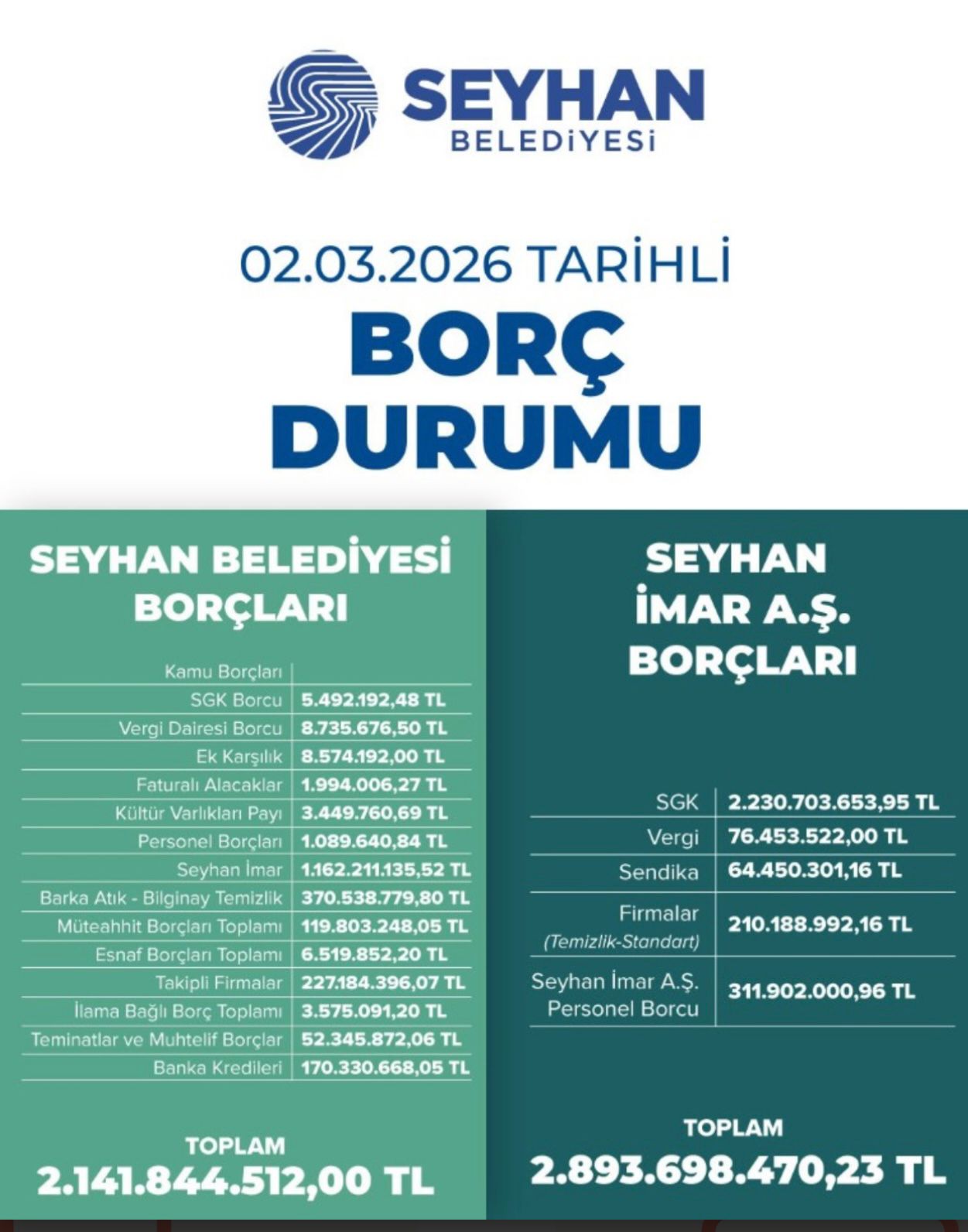 Yıldırım açıklamasında, belediyenin iştiraki olan Seyhan İmar A.Ş.’nin mali durumuna dikkat çekerek şu ifadeleri kullandı:“Şubat 2026 sonu itibarıyla Seyhan İmar A.Ş.’nin borcu 2 milyar 893 milyon 698 bin 573 TL seviyesine ulaşmıştır. Bu tablo, şirketin ciddi bir mali krizin içine sürüklendiğini ve neredeyse işlevsiz hale geldiğini göstermektedir. Mevcut şirket bu durumdayken yeni bir şirket kurulması kamuoyunda doğal olarak soru işaretleri doğurmaktadır.”“Ana sözleşme olmadan şirket kurulamaz”Mart ayı belediye meclisinde gündeme getirilen SEYBELTAŞ A.Ş. maddesine de değinen Yıldırım, sürecin hukuki açıdan tartışmalı olduğunu ifade etti.“Kurulması planlanan şirketin ana sözleşmesi oluşturulmadan yalnızca isim üzerinden meclise getirilmesi hukuki açıdan geçerli değildir. Meclis üyelerimizin tüm uyarılarına rağmen söz konusu madde CHP’li meclis üyelerinin oy çokluğu ile kabul edilmiştir. Meclis üyeleri unutmamalıdır ki; kendileri Seyhanlı vatandaşlarımızın oylarıyla seçilmişlerdir ve sorumlulukları öncelikle Seyhan halkınadır.”